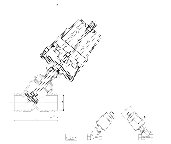 | DN | اتصال BSP | L (mm) | H (mm) | W (mm) | K (mm) | D (mm) | SW | وزن (kg) |